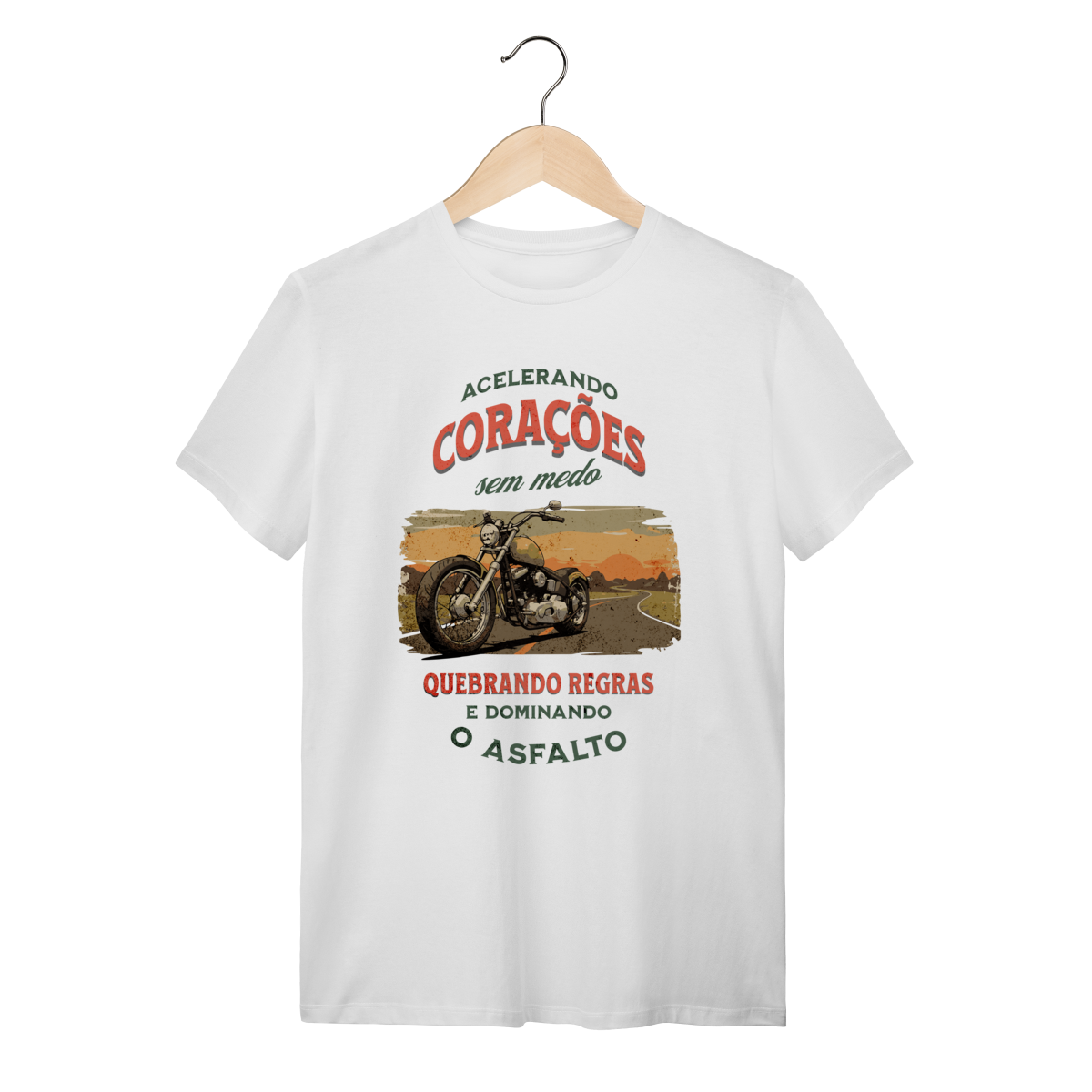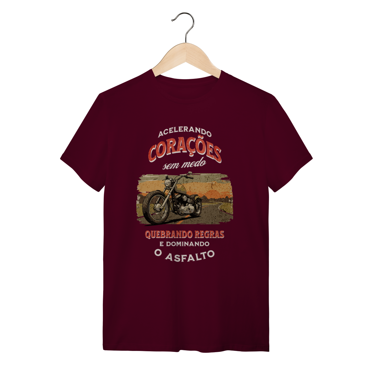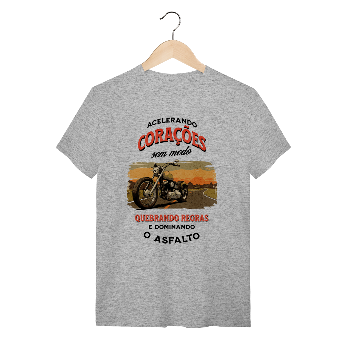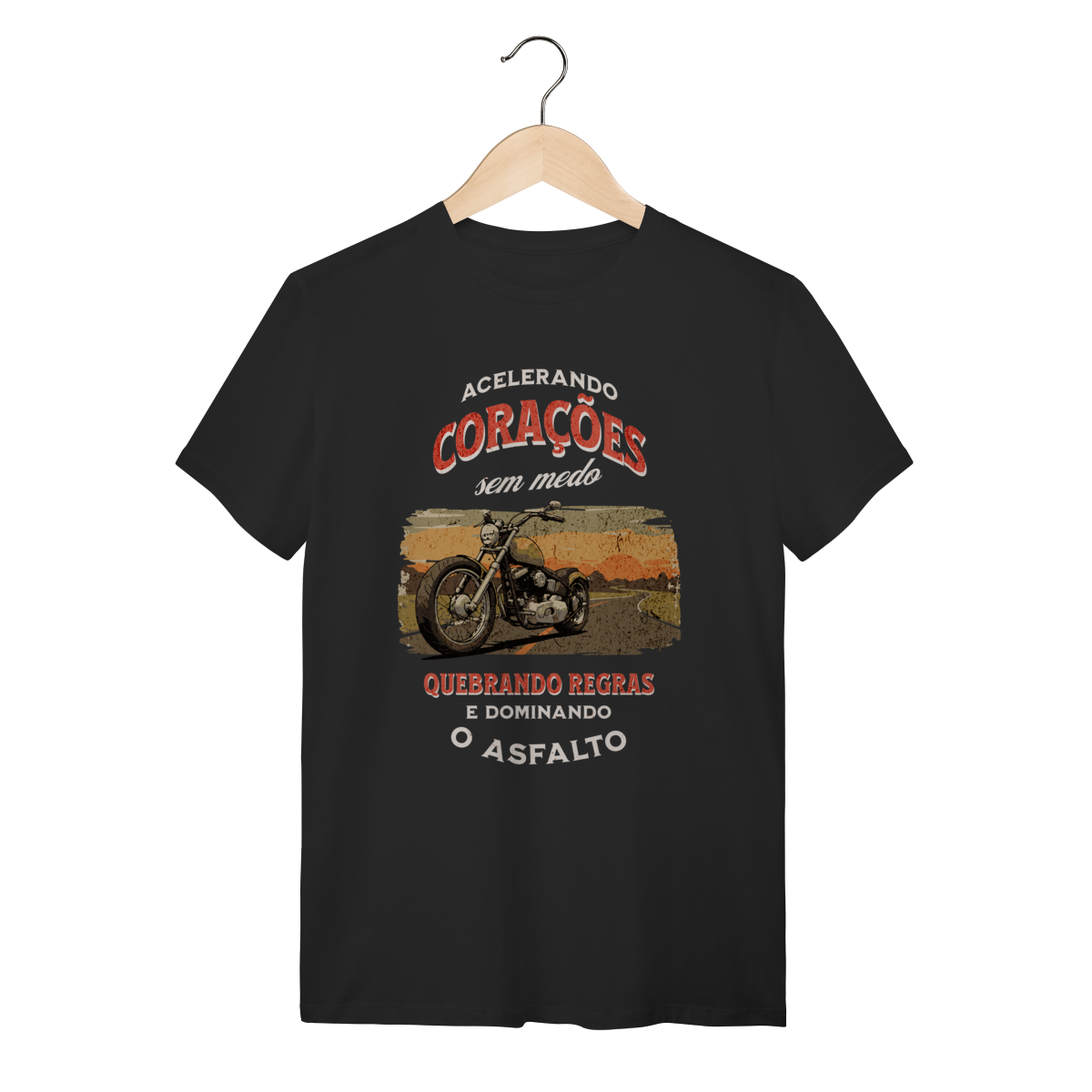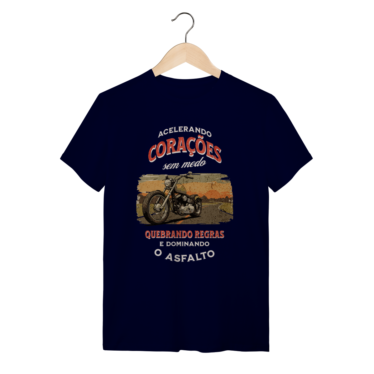 Estampa: Mais que uma arte, é a alma da estrada. A estampa mostra a liberdade em sua forma mais pura: uma moto clássica sob o vasto horizonte, com o sol se pondo no asfalto que se estende ao infinito. As cores quentes e o design nostálgico resgatam a sensação de paz e aventura que só a estrada oferece.