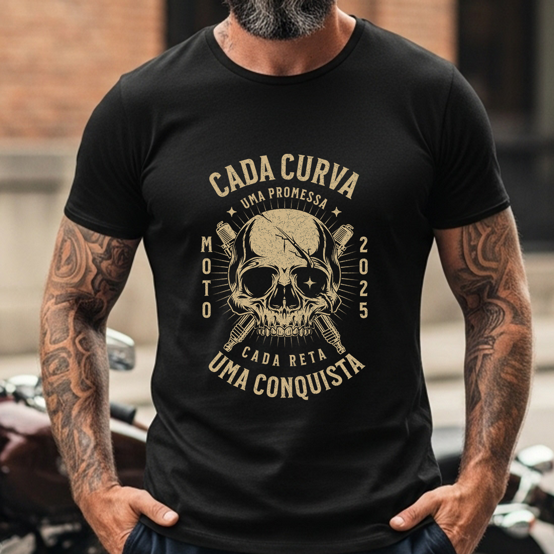 Estampa: Para quem vive a adrenalina em duas rodas, a Camiseta"Cada Curva, Uma Promessa. Cada Reta, Uma Conquista" é mais que uma peça de roupa: é uma declaração de liberdade e paixão. Feita para os verdadeiros amantes da velocidade, esta camiseta combina design autêntico com o conforto que você merece, seja na estrada ou no dia a dia.