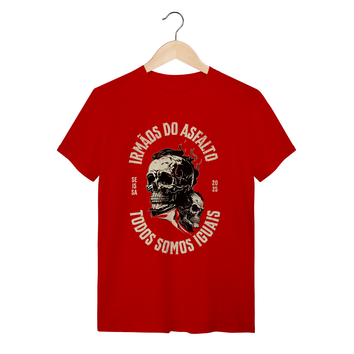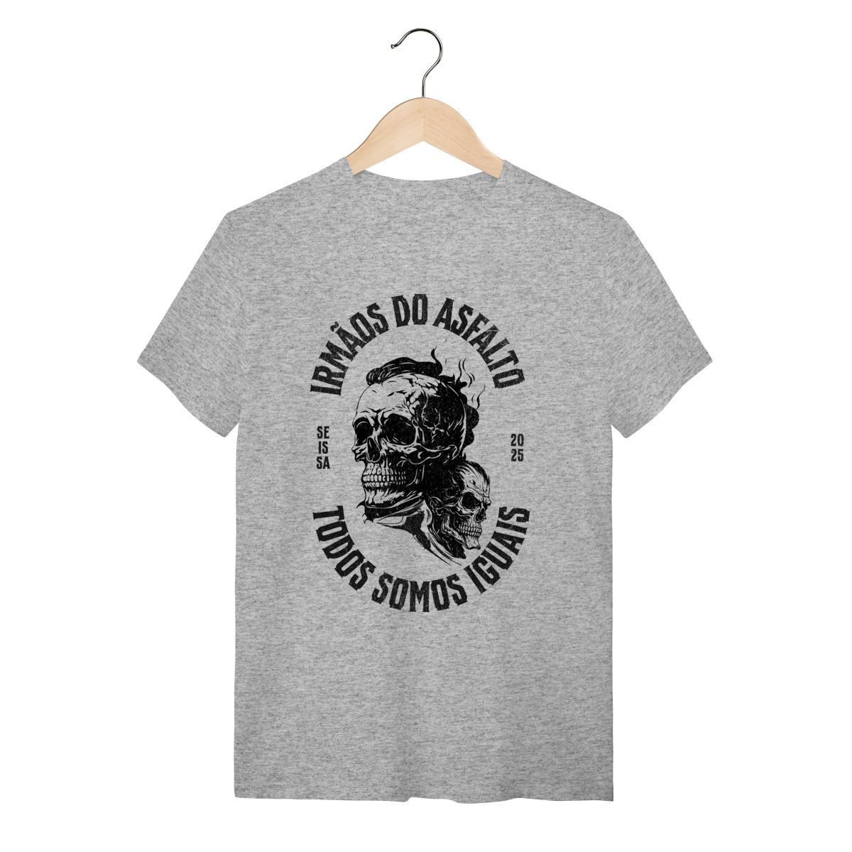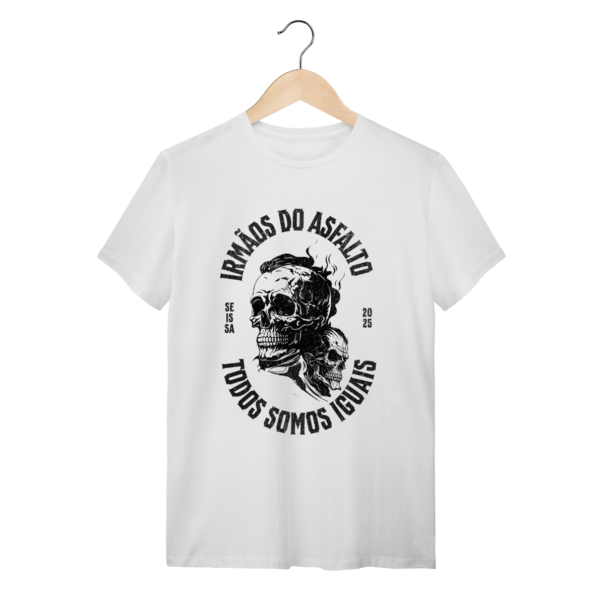 Estampa: Sinta a liberdade do asfalto na pele. A camiseta "Irmãos do Asfalto" não é apenas uma peça de roupa, é um manifesto para quem vive a estrada e a fraternidade de duas rodas. Ela foi criada para você que sabe que, não importa a máquina, a cilindrada ou o caminho, "Todos Somos Iguais".