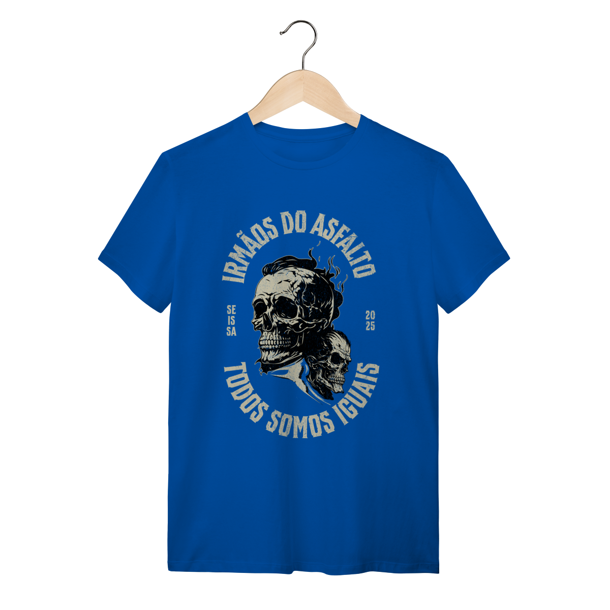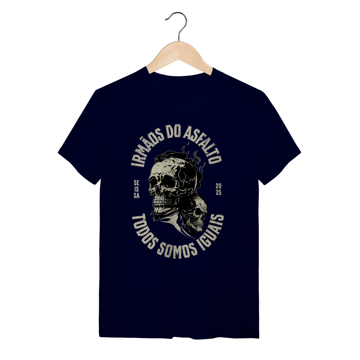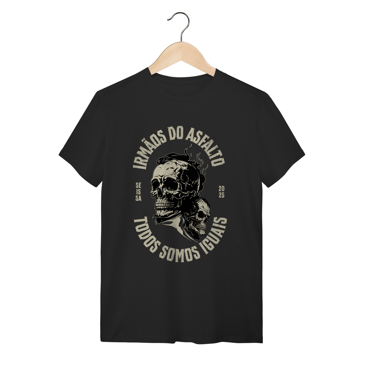 Estampa: Sinta a liberdade do asfalto na pele. A camiseta "Irmãos do Asfalto" não é apenas uma peça de roupa, é um manifesto para quem vive a estrada e a fraternidade de duas rodas. Ela foi criada para você que sabe que, não importa a máquina, a cilindrada ou o caminho, "Todos Somos Iguais".